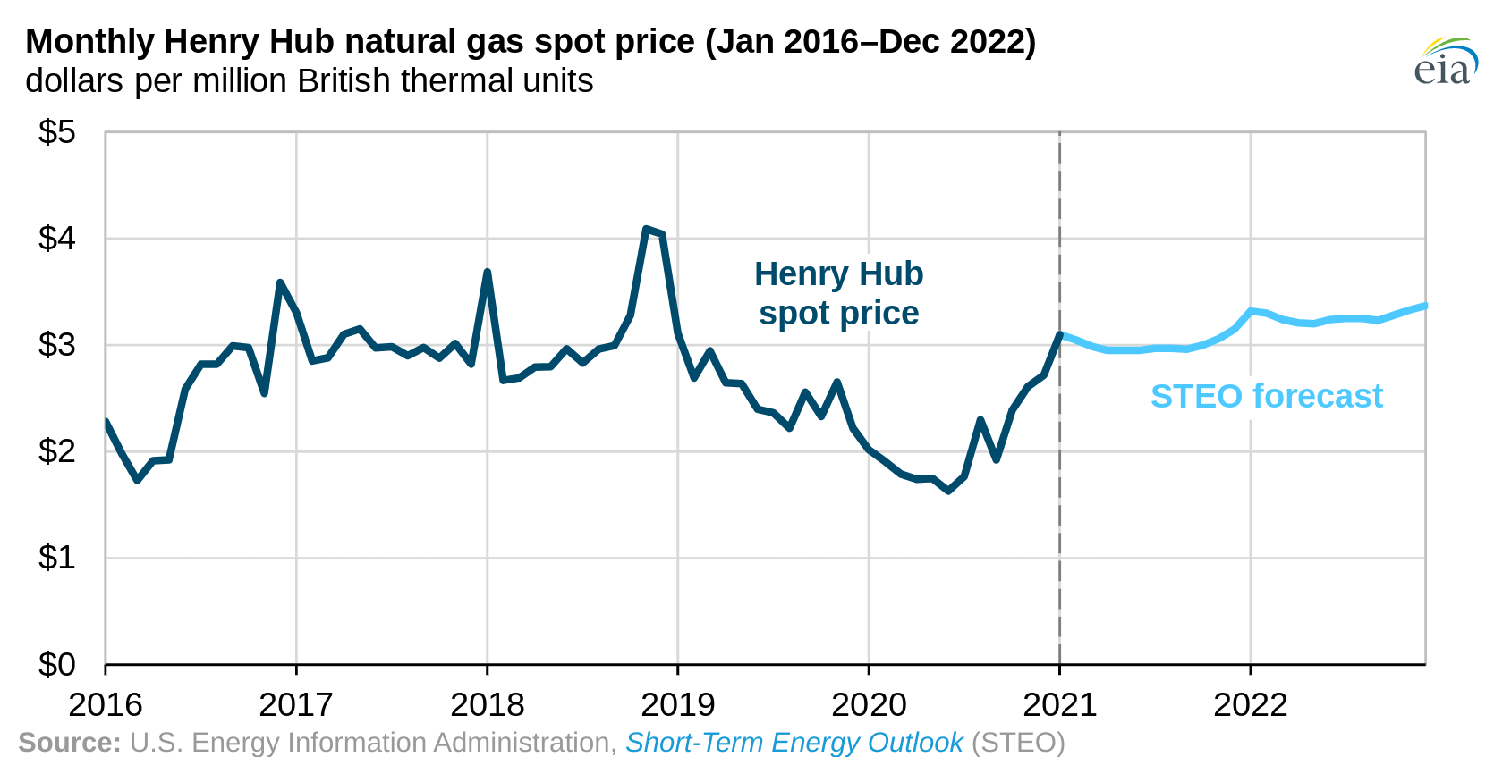 根据能源信息管理局(EIA),虽然天然气价格去年低,天然气产量也下跌。现在联邦分析显示天然气价格上升到2022年,这可能促使更多的燃料在天然气和煤炭之间转换,并可能让这种资源“从预计2021年增加的可再生能源产能中获得更多竞争”。
