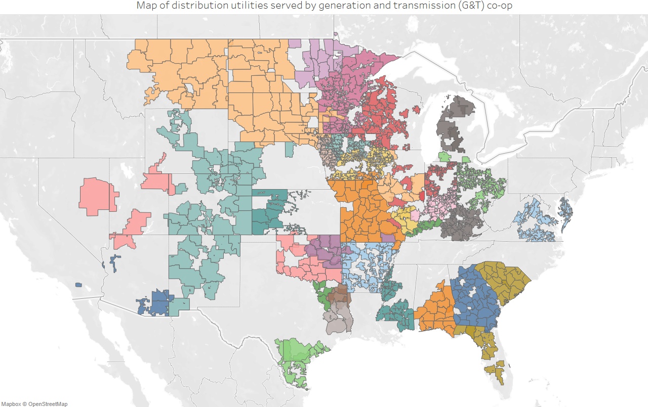 如今,地方配电合作社,规模从数百名客户到数十万,服务于美国大部分大约13%的人。大多数配送合作社采购能源,传输服务,往往其他能源服务一代和传输合作社(戈)。这些g&t本身都是非营利性组织,属于合作公用事业公司。